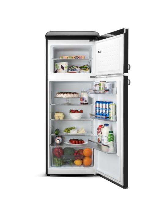 Brīvi stāvošs 148 cm augsts retro stila ledusskapis ar saldētavu augšpusē. Pateicoties savam izsmalcinātajam dizainam un kompaktajiem izmēriem, ideāli piemērots stilīgām virtuvēm, studijām vai kā galvenais ledusskapis 2-3 cilvēku mājsaimniecībai.