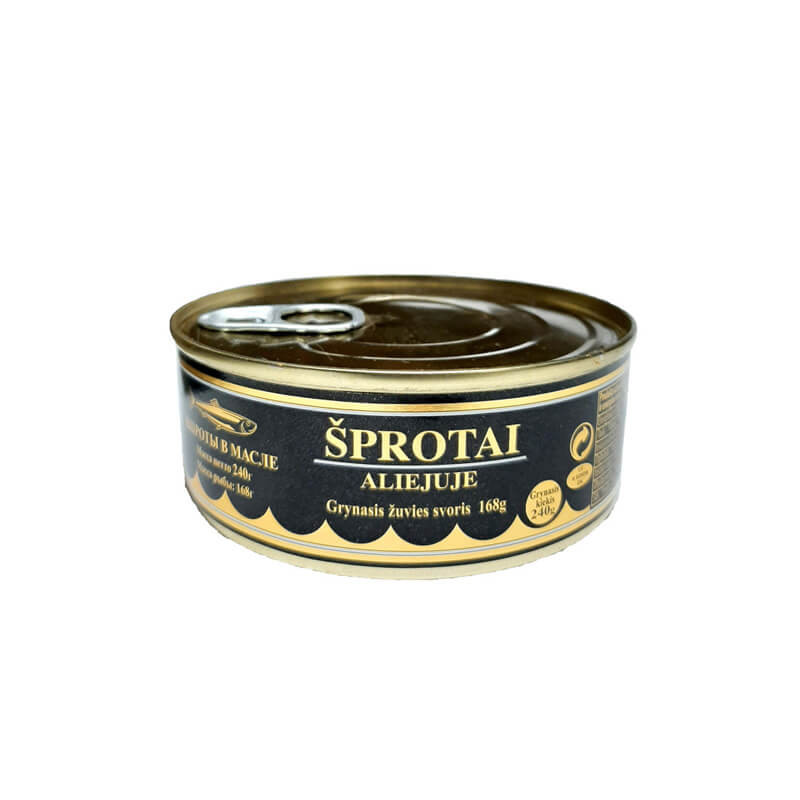 - Galvenā sastāvdaļa: Šprotes (tīrais zivju svars 168 g).