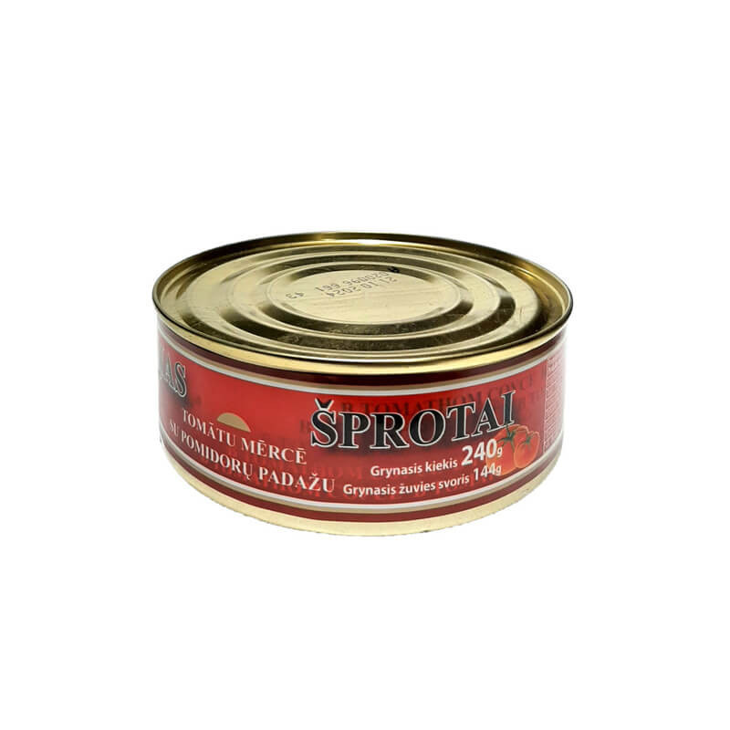 - Galvenā sastāvdaļa: Šprotes (tīrais zivju svars 144 g).