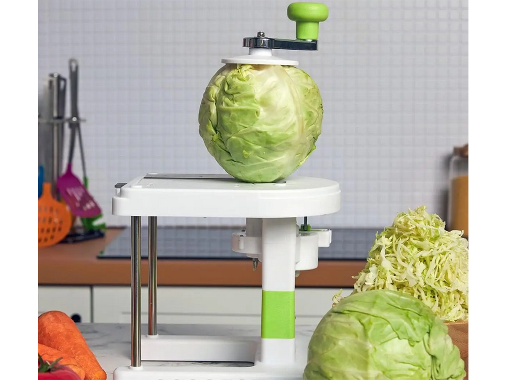 Tas ir neaizstājams instruments tiem, kam patīk skābēti kāposti, svaigi “Coleslaw” salāti vai sautējumi. Unikālais spirālveida mehānisms ļauj vienmērīgi sasmalcināt kāpostus, griežot rokturi. Rezultāts ir ideāli vienādi, plānas šķēlītes, ko ir grūti iegūt, griežot ar parastu nazi.