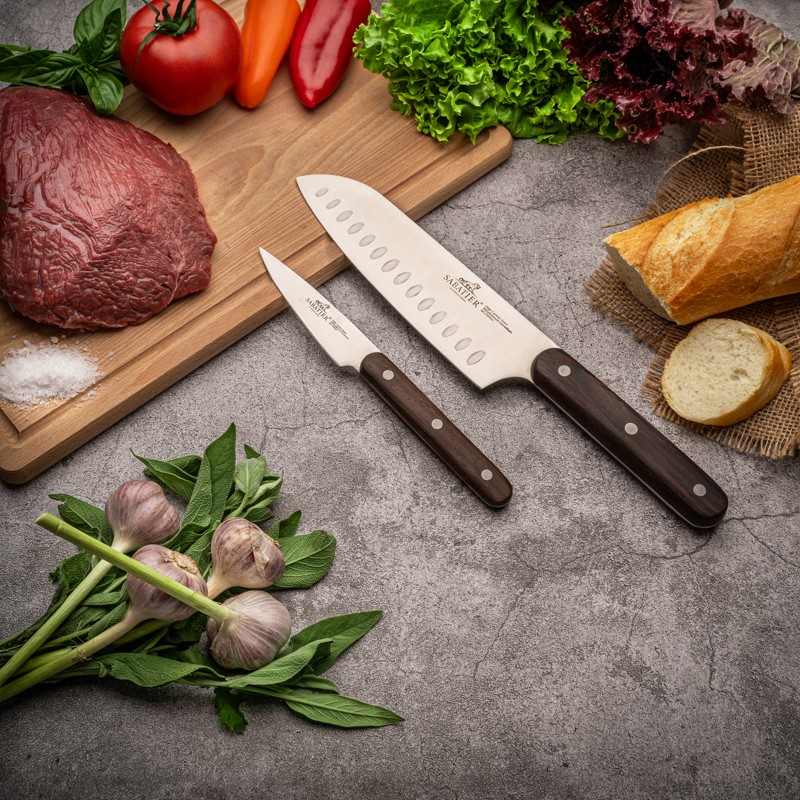 Nepretējīgi tam, vai esat profesionāls šefs, vai tik mācāties gatavoties, Sabatier® International nazis ir uzgalis ir asuviņi ir kvalitatīvi stāvvirti virtuves labiekārtotāji visām sarīkojumiem. Šo 2 daļu komplektu veido augļu un dārzeņu griešanas nazis un 20 cm šefpavārs nazi ar X50CrMoV15 nerūsējošā tērauda zāģi. Paaugstinātā oglekļa saturs tēraudā ļauj nazim būt stiprākiem. Šāda tipa tērauds arī atšķiras ar lielu stingrību un izturību pret triecieniem un koroziju. Rokas sakums izgatavots no POM plastmasas. Šie nazis paredzēti izmantot jebkurā virtuvē un jums sniegs izcilu vērtību daudzus gadus.