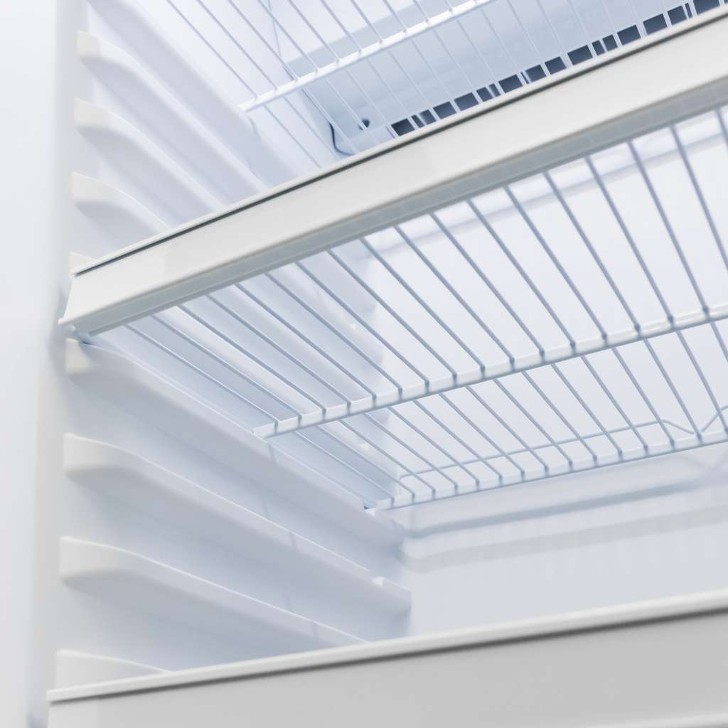 Regulējama augstuma plaukti ļauj pielāgot iekšējo telpu dažādu izmēru pudelēm vai iepakojumiem.