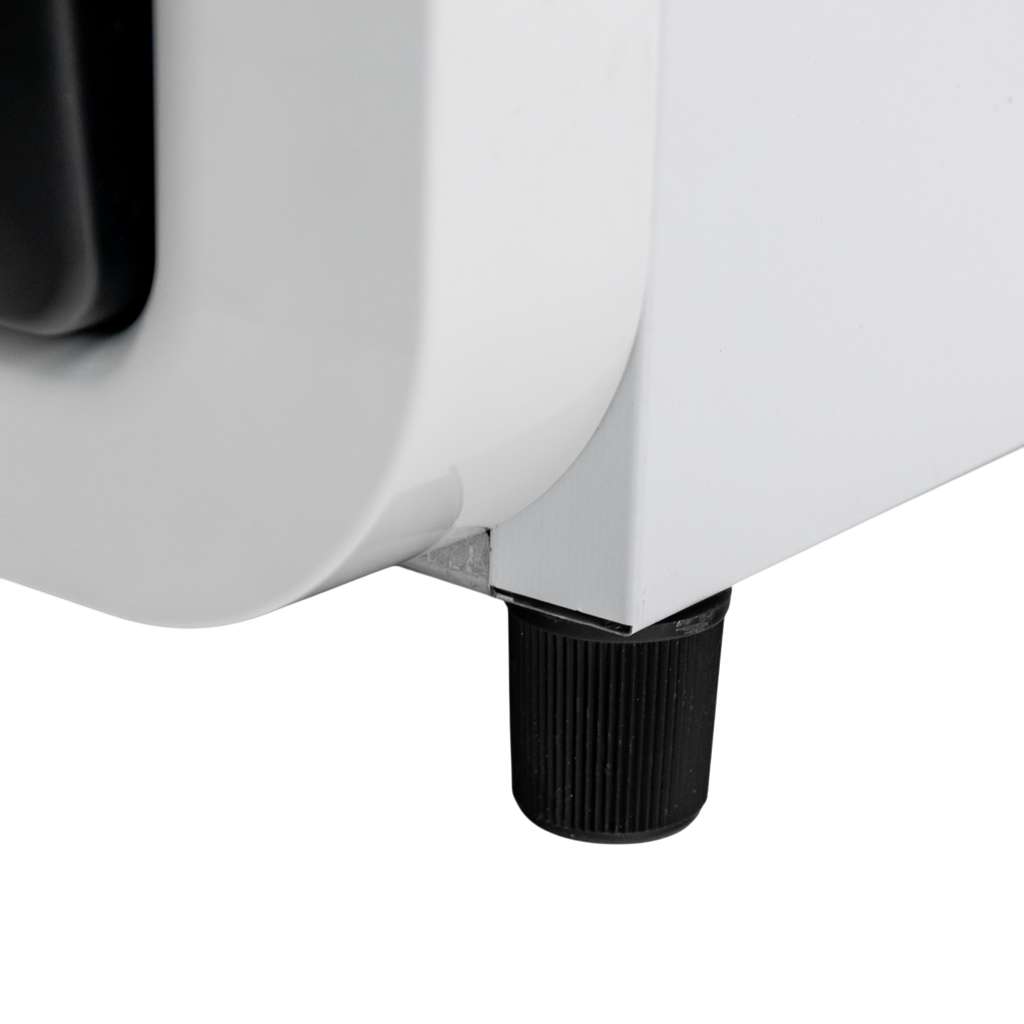 Baltā pulverkrāsotā tērauda ārpuse ir izturīga pret mehāniskiem bojājumiem un ir viegli tīrāma.