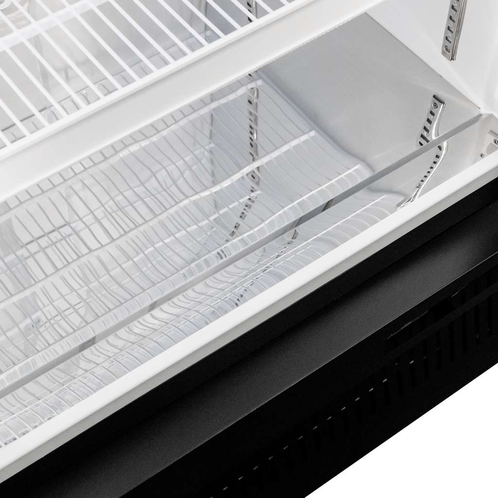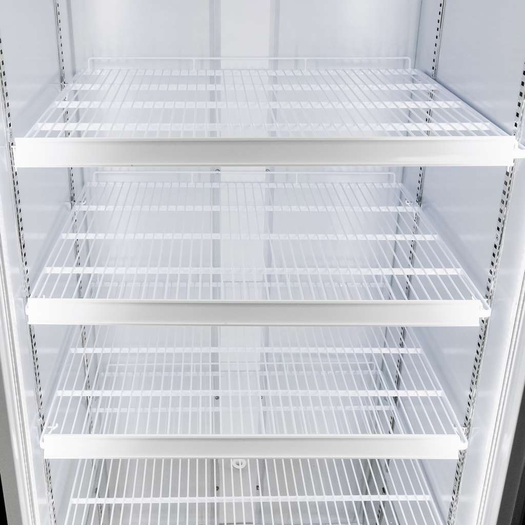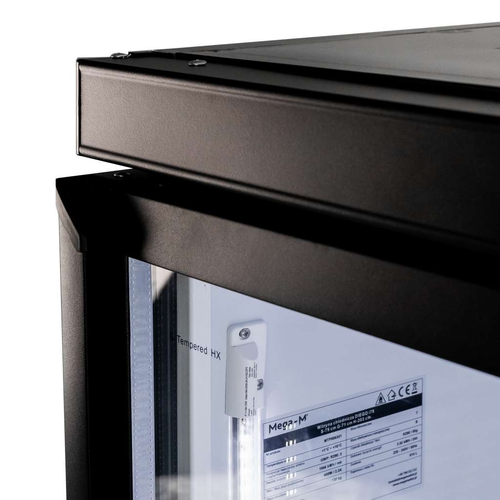 - Vertikālās LED lentes abās durvju pusēs spilgti apgaismo visu sortimentu, padarot preces labi redzamas jebkurā augstumā.