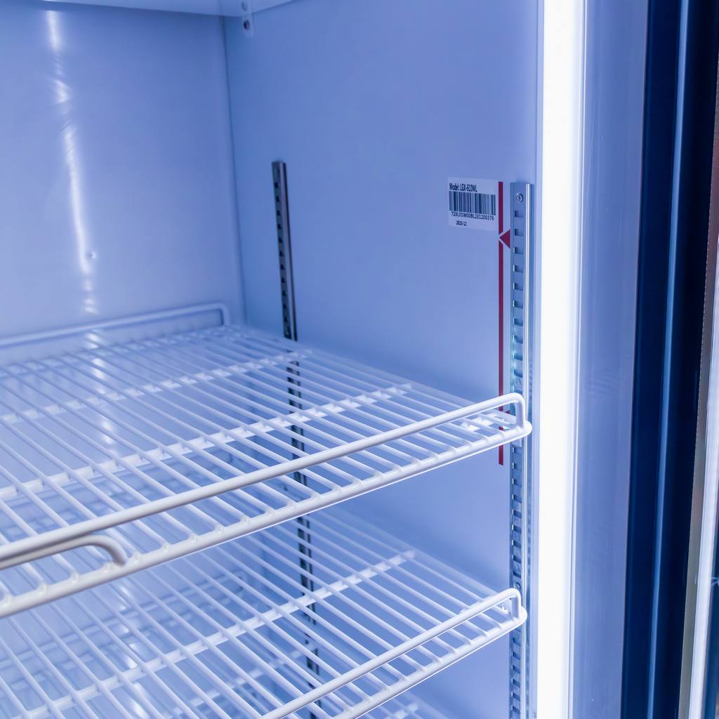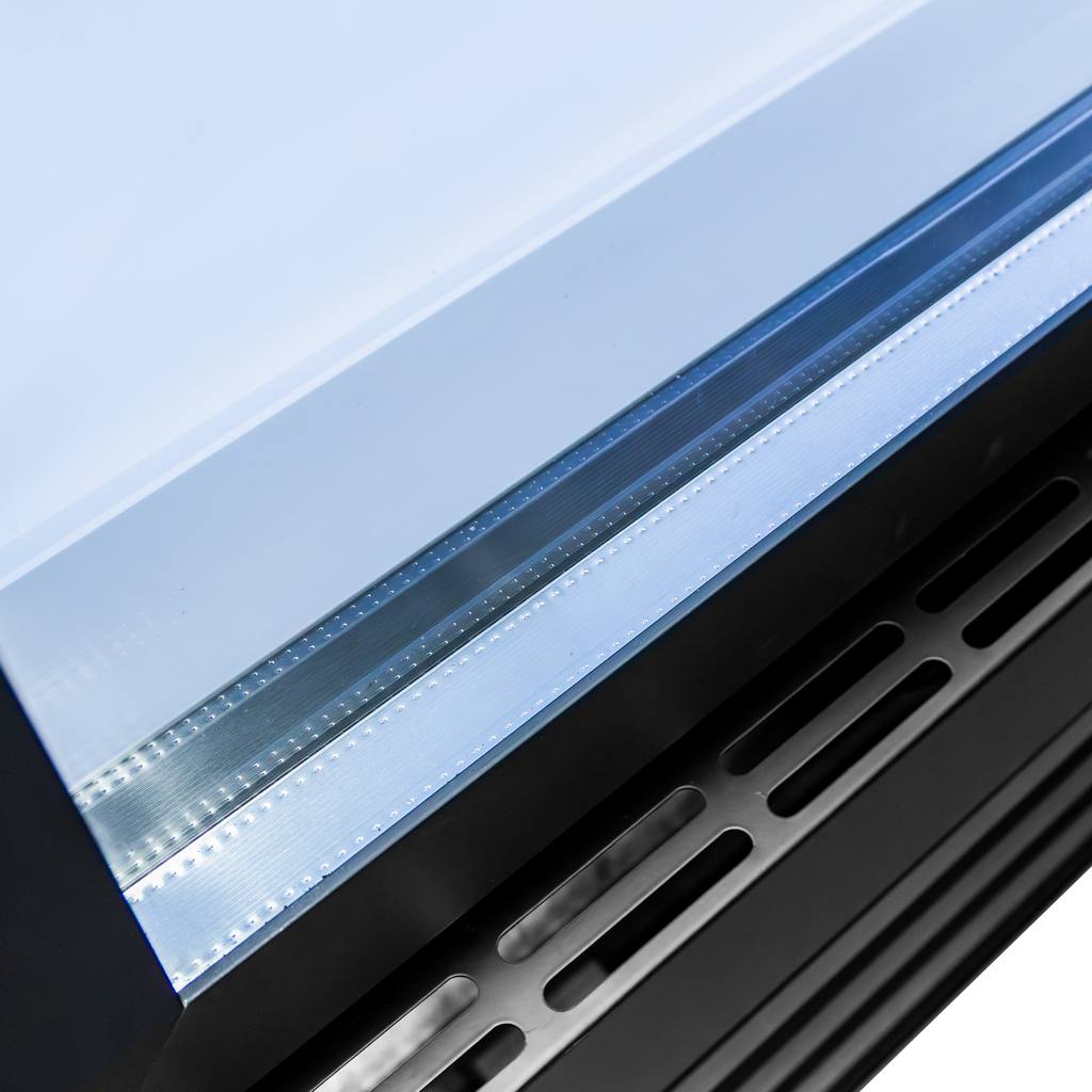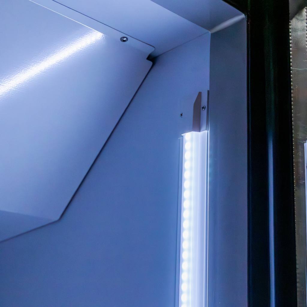 Vertikālā LED sloksne labajā pusē spilgti apgaismo visu sortimentu bez tumšām zonām.
