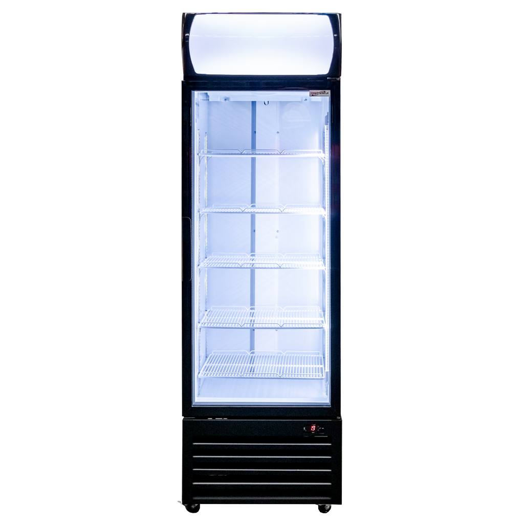 Vitrīna darbojas komerciālās tehnikas normu robežās, taču ventilatoru dēļ tā ir skaļāka par parastajiem mājsaimniecības ledusskapjiem.