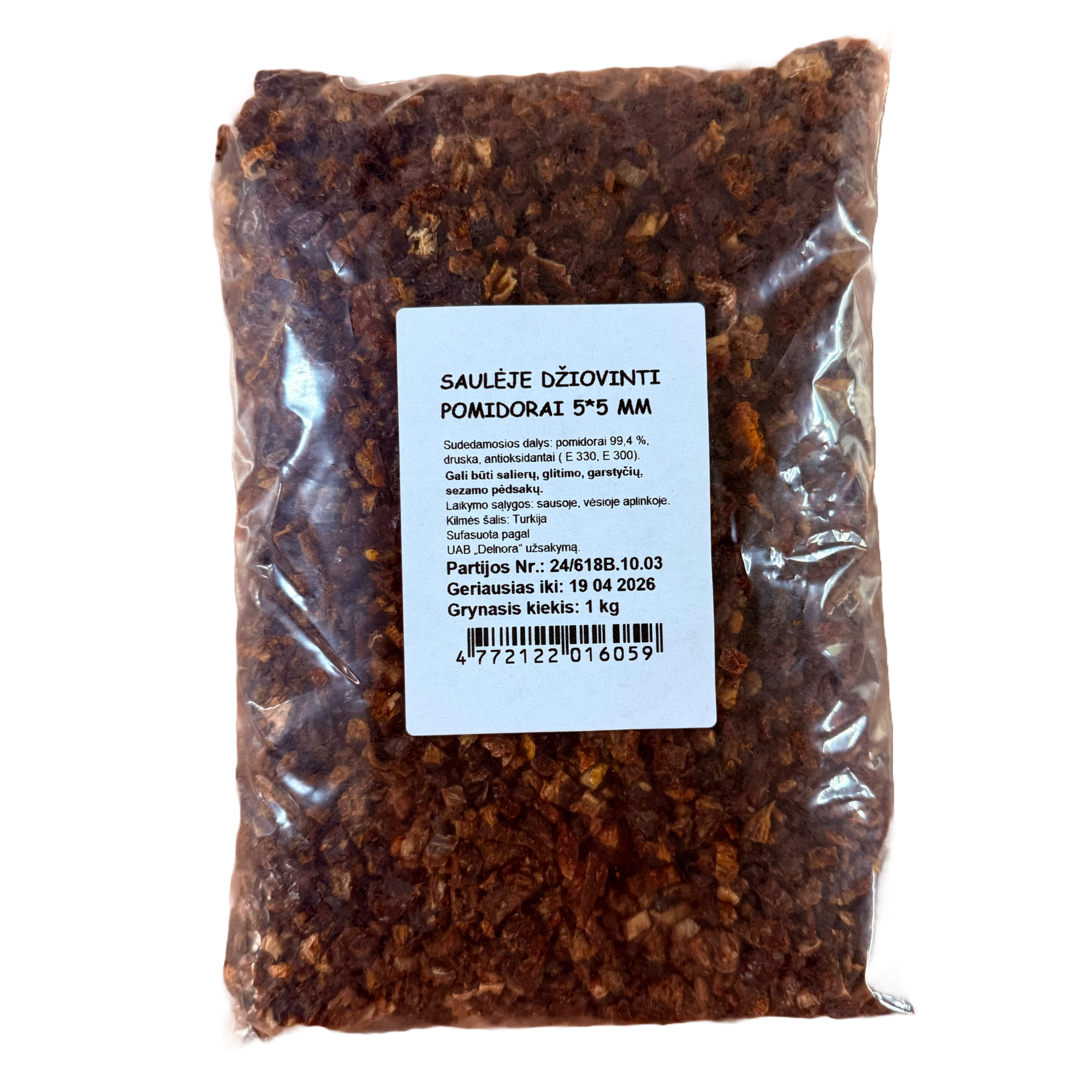 Tomāti saulē žāvēti 5×5 mm, 1 kg – intensīvs un aromātisks garšvielu ikvienai virtuvei!
