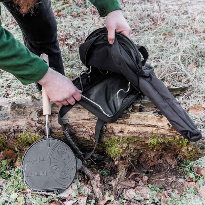 Petromax transportēšanas soma ir vienkāršs un ērts veids, kā ievietot un uzglabāt Petromax čuguna vafeļu pannu. Soma ir izgatavota no izturīga ripstop auduma un izšūta ar Petromax logotipu. Somas iekšpusē ir viena ar rāvējslēdzēju aizverama kabata un divas iebīdāmas kabatas, kas nodrošina vietu dažādiem piederumiem.