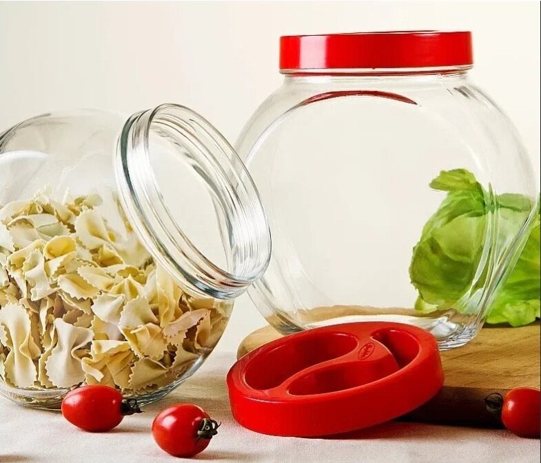 - Liela ietilpība: 2 litru tilpums ļauj ievietot lielu daudzumu cukura, miltu, makaronu, putraimu vai gardumu.