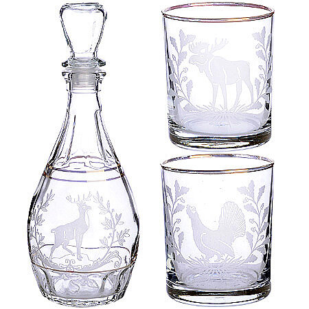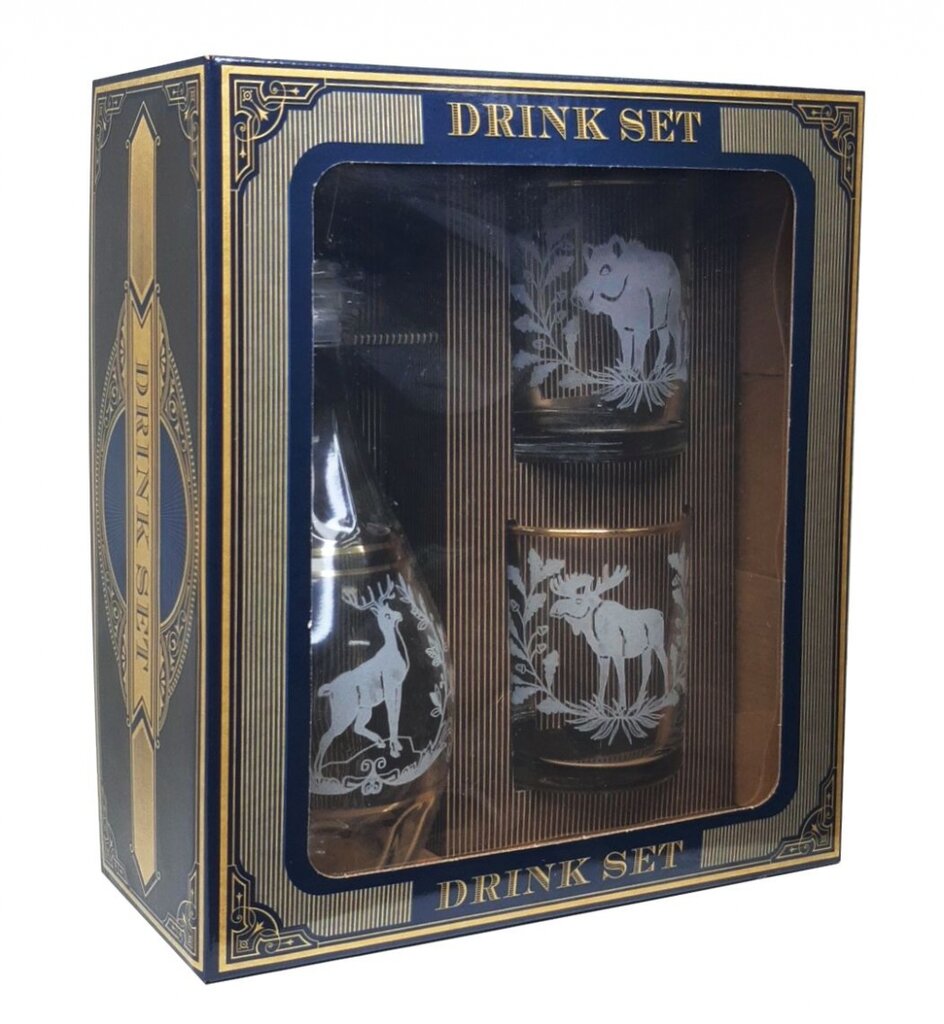Šis 3 daļu “Dekostek” komplekts ir radīts mājīgiem vakariem pie kamīna vai sarunām ar labāko draugu. Komplektā ietilpst klasiska karafē un divas ietilpīgas glāzes, kas lieliski piemērotas viskija, brendija vai citu dzērienu baudīšanai. Medību tematika piešķir komplektam unikalitāti un vīrišķīgu raksturu.
