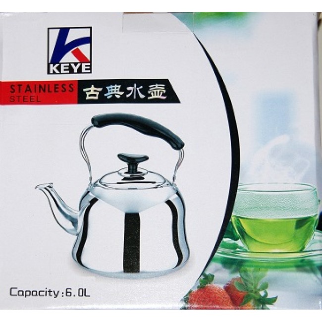 Tējkanna ar svilpi 6 l, izgatavota no augstas kvalitātes nerūsējošā tērauda, kas atbilst starptautiskajiem veselības standartiem.