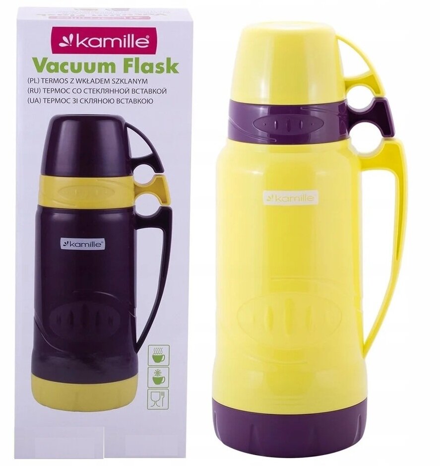 „Kamille“ 0,6 l termoss ir ideāla izvēle ceļojumiem, darbam vai piknikiem. Šis modelis izceļas ar to, ka tam ir nevis viena, bet divas ērtas krūzes ar rokturiem, tādēļ varēsiet viegli padalīties ar karstu dzērienu ar draugu vai kolēģi.