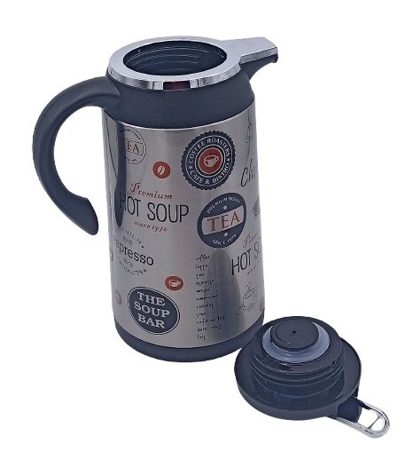 Šī 1 litra termoss-krūze ir ideāla izvēle tiem, kas novērtē dzērienu kvalitāti un estētisku pasniegšanu. Moderns dizains ar kafijas un ēdienu ēdienkartes stila uzrakstiem (“Hot Soup”, “Espresso”, “Chocolate”) lieliski iederēsies gan mājas virtuvē, gan birojā vai piknikā.