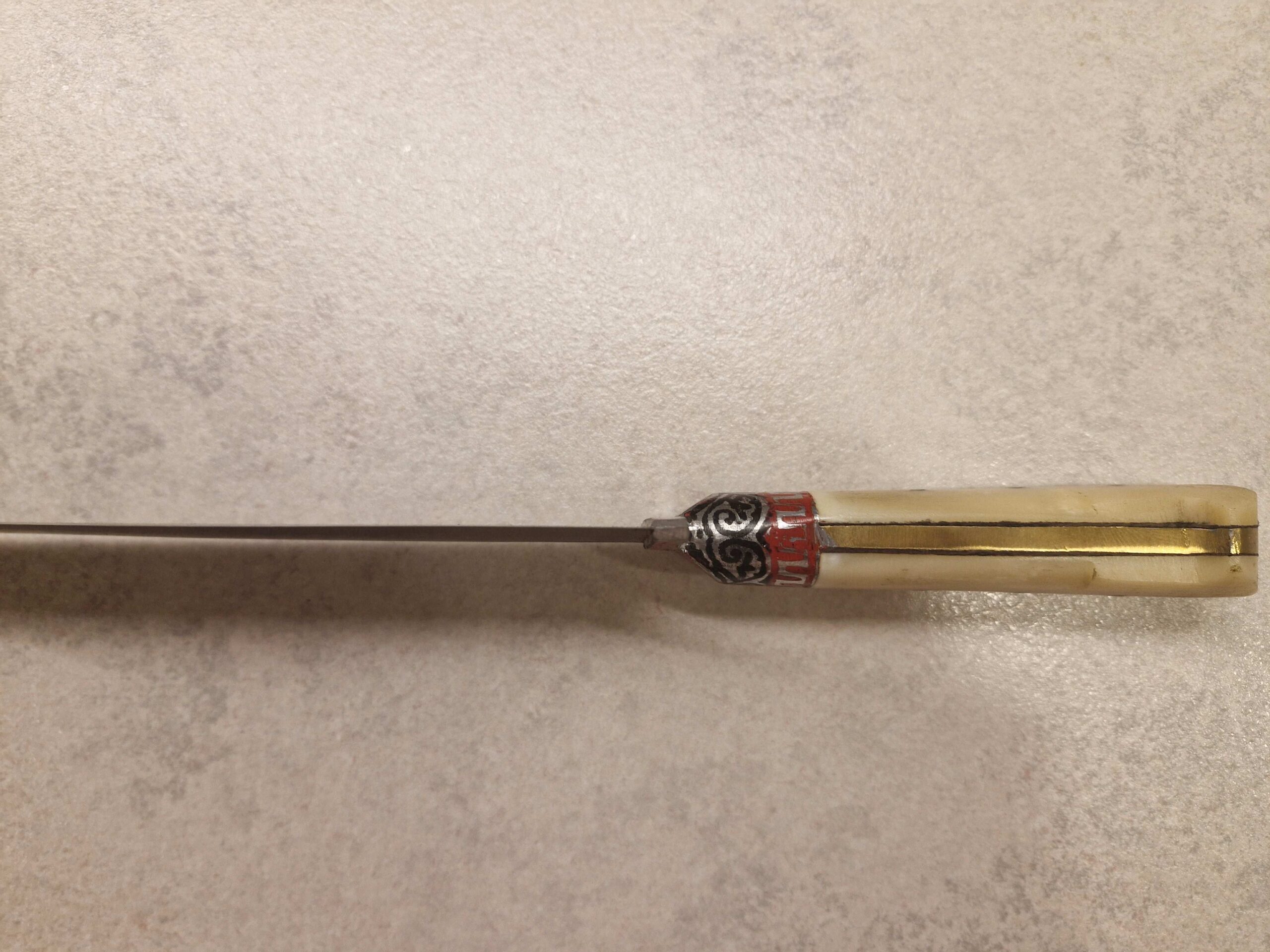 Dabīga kaula rokturis: Ergonomisks, patīkams pieskarties un piešķir nazim greznības sajūtu.