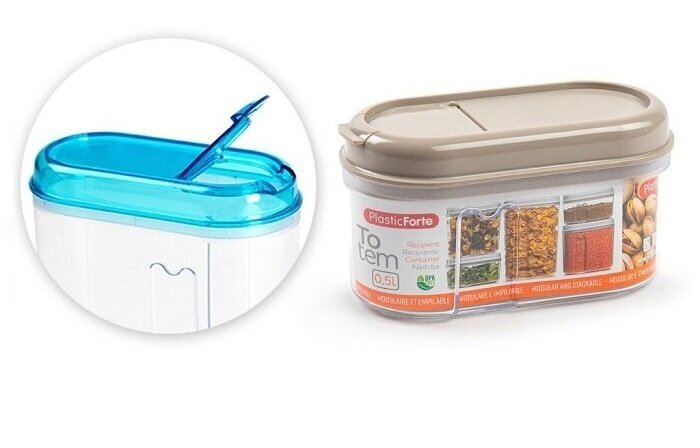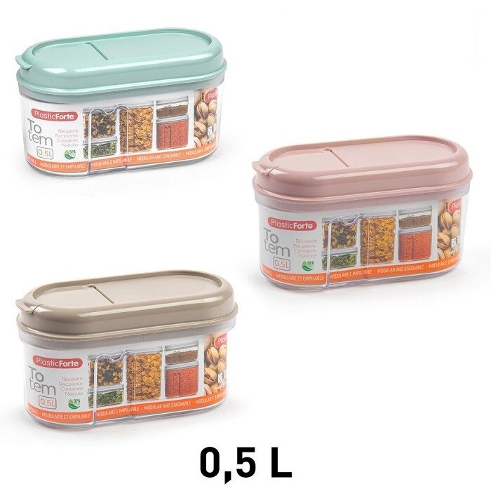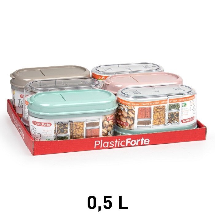 Šis “PlasticForte” 0,5 litru trauks ir lielisks risinājums, lai organizētu virtuves skapīšus un saglabātu produktus svaigus ilgāk. Ražots Spānijā, tas izceļas ar kvalitāti un funkcionalitāti.