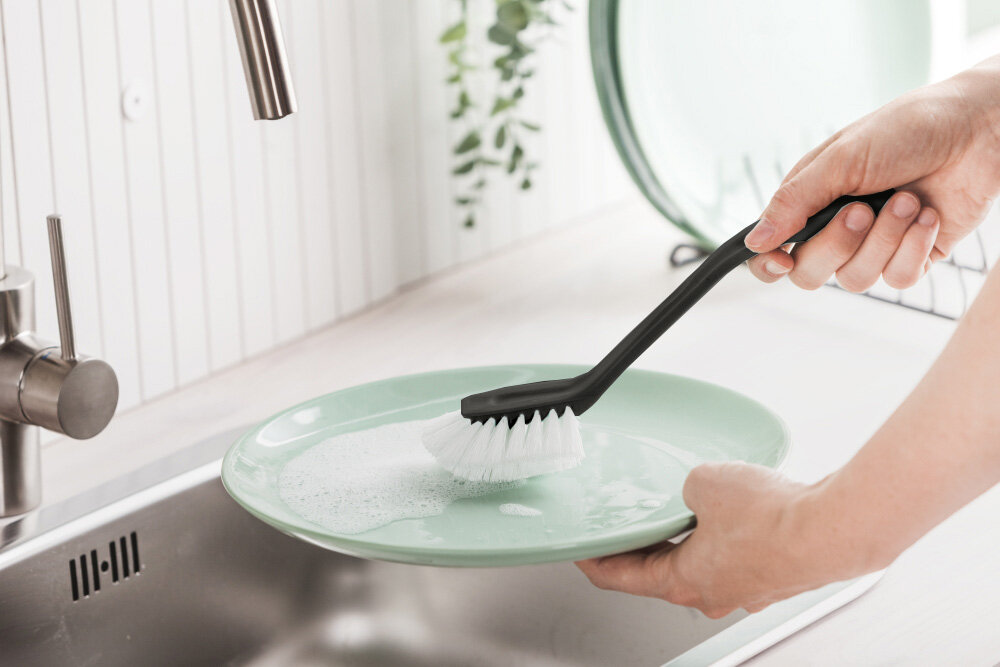 - Ergonomika: Garais, izliektais rokturis ļauj sasniegt dziļu trauku, vāžu vai burku dibenu, ko grūti izmazgāt ar roku.