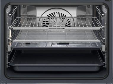 Komplektā atradīsiet teleskopiskās vadotnes, emaljētu cepumu paplāti, tauku savākšanas trauku, nerūsējošā tērauda režģi un divdaļīgu tvaika komplektu.