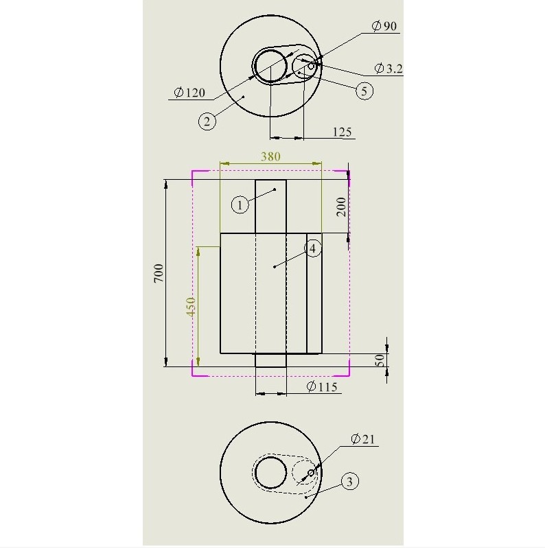 Šī tvertne ir paredzēta 115 mm diametram. Uzstādīšanai uz 120 mm caurules būs jāizmanto redukcijas pāreja.
