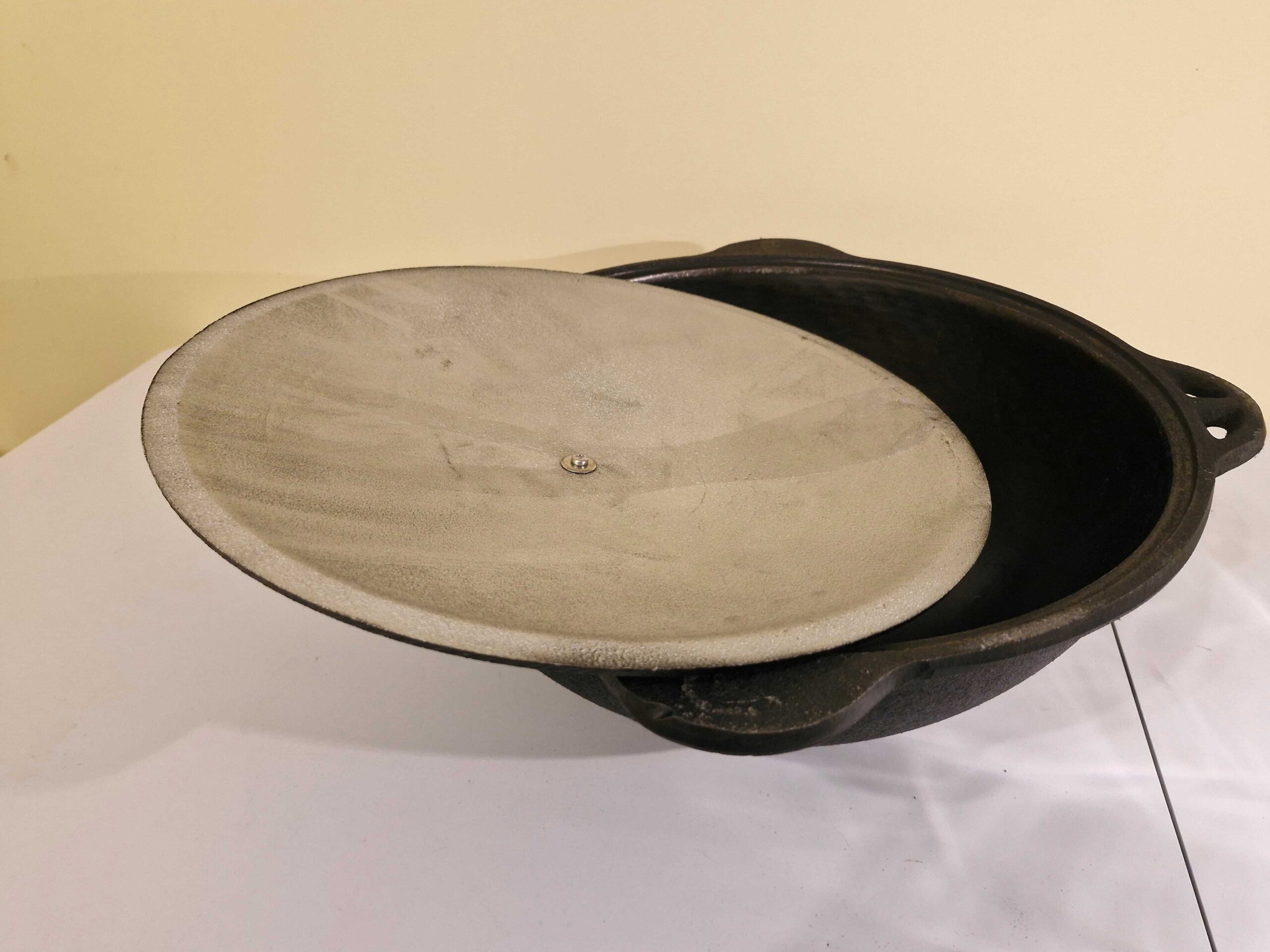 - Sagatavošana: Pirms pirmās lietošanas kazanu obligāti jāizkarsē ar sāli un jāieziež ar augu eļļu.