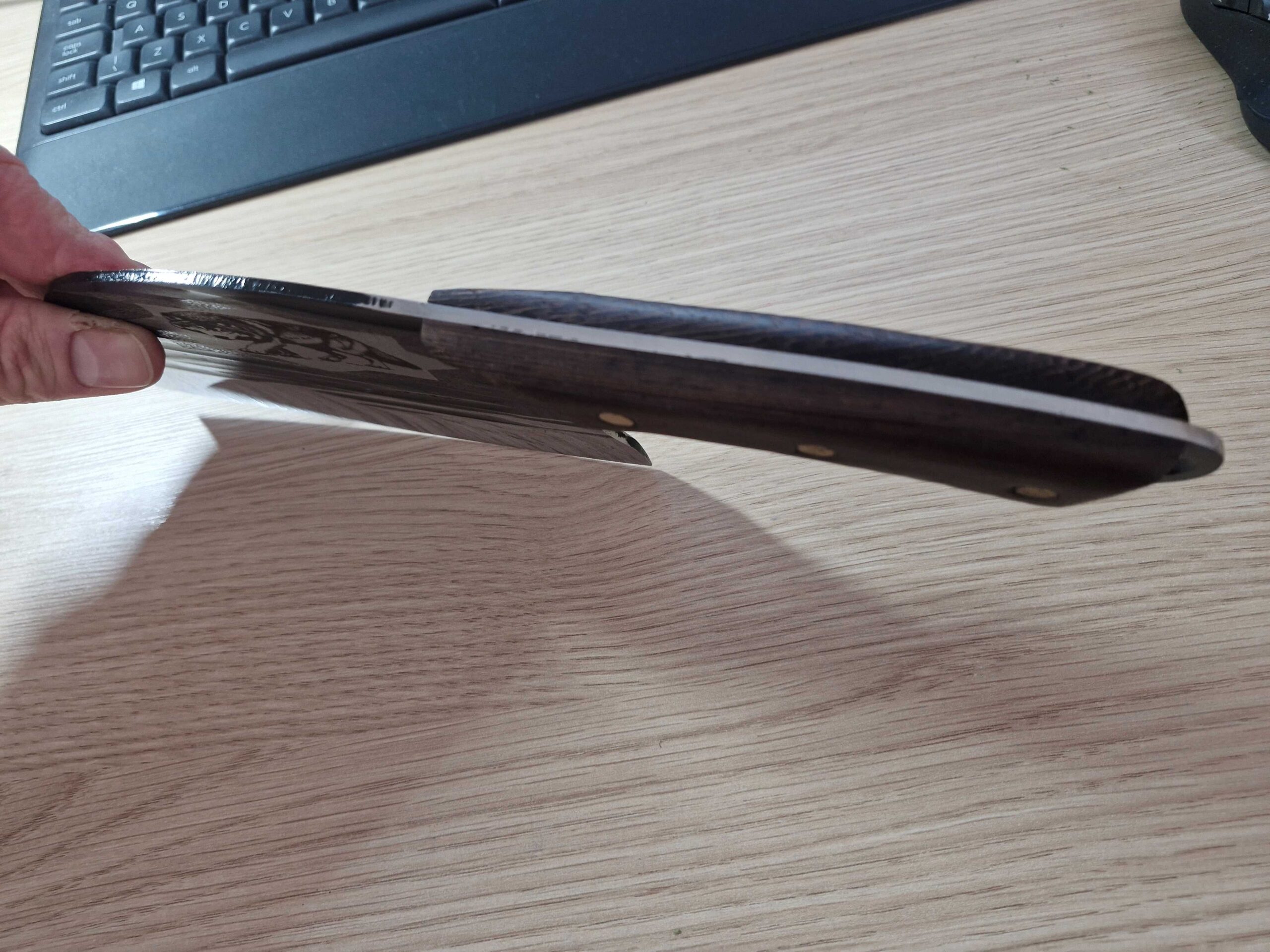Šis autentiskais, rokām darinātais uzbeku “Pčak” tipa kapātājs ir neaizstājams instruments katram kulinārijas entuziastam. Radīts, balstoties uz gadsimtiem senām tradīcijām, tas apvieno estētisko skaistumu un praktisko funkcionalitāti. Platais asmens ar unikālu rakstu ne tikai izskatās iespaidīgi, bet arī nodrošina stabilitāti, griežot cietus produktus.