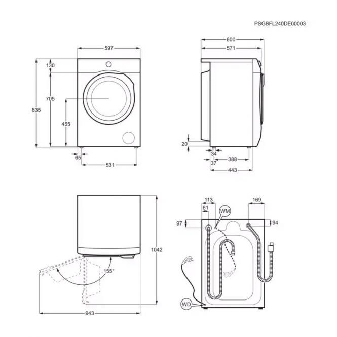 • Kondensējošā žāvētājs: ūdens tiek savākts ūdens tvertnē, nav nepieciešama