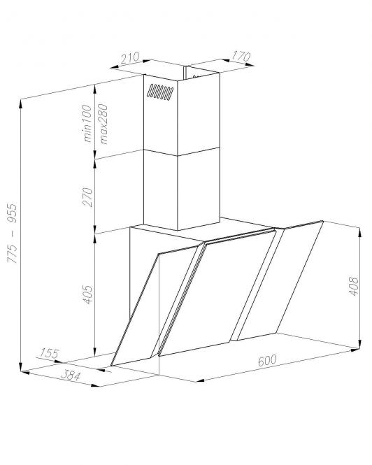 - Produkta tips: Pie sienas montējams vertikāls tvaika nosūcējs