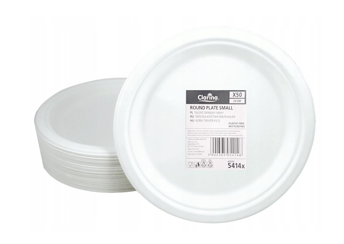 Vienreizējās papīra šķīvīši no cukurniedru šķiedras CLARINA