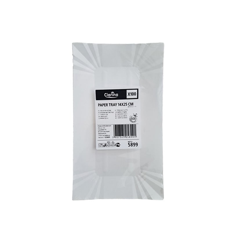 Vai meklējat interesantāku risinājumu par standarta apaļajiem šķīvjiem? CLARINA taisnstūra papīra šķīvji piešķirs jūsu galdam modernumu un ir neticami praktiski. Pateicoties to iegarenajai 14×25 cm formai, tie ir lieliski piemēroti ēdienu pasniegšanai, kas neietilpst parastajos šķīvjos – no ceptas zivs līdz hotdogiem vai garām sviestmaizēm.