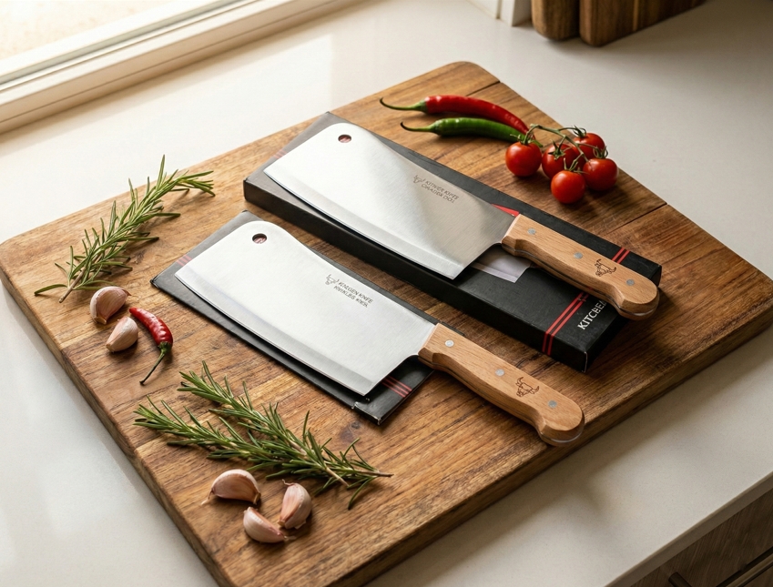 Optimāls 20 cm izmērs: 8 collu (aptuveni 20 cm) asmeņu garums nodrošina lielu kapāšanas laukumu, tāpēc ar vienu vēzienu var sadalīt lielākus gaļas gabalus.
