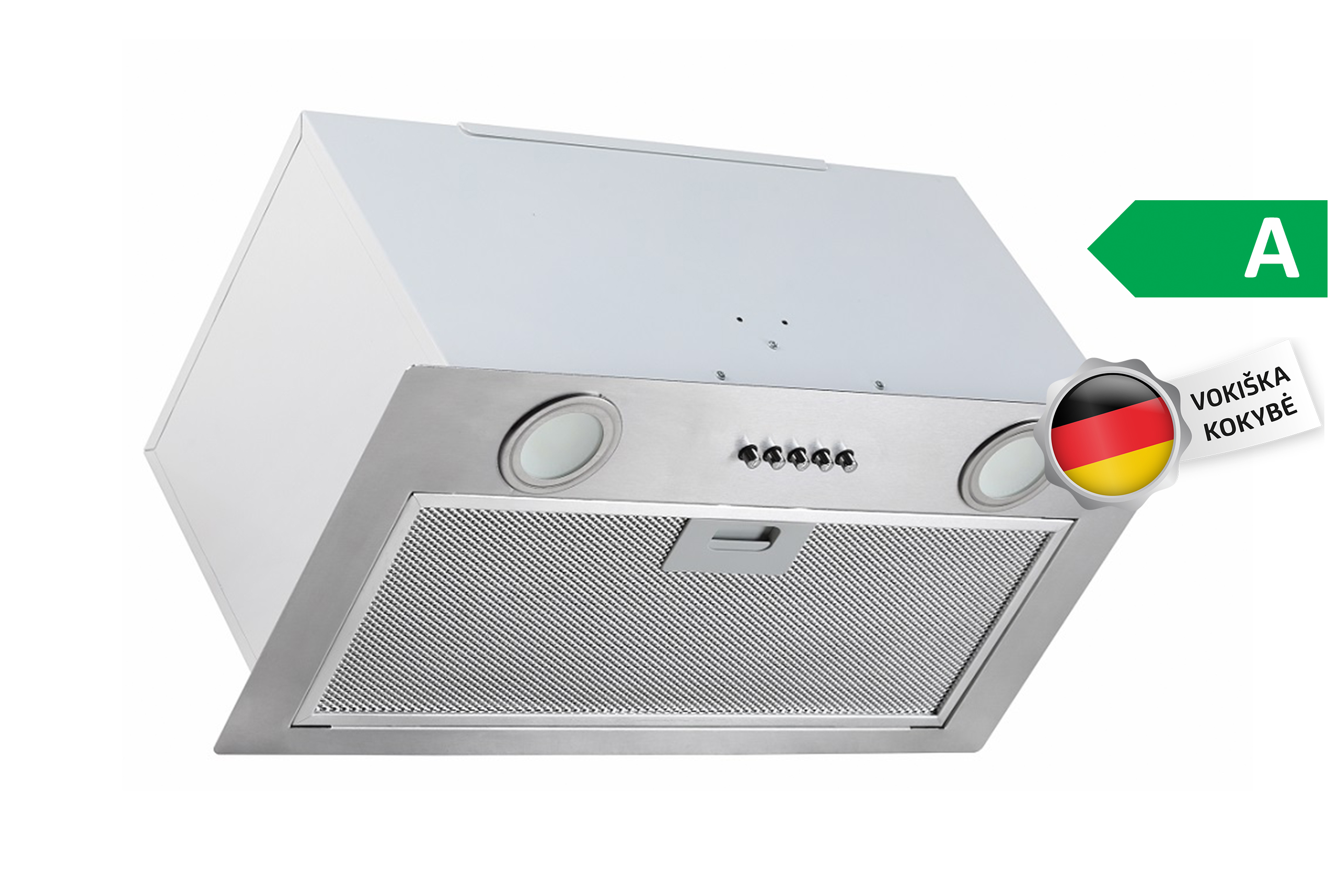 Iebūvējams tvaika nosūcējs (montējams skapītī). Ideāls risinājums standarta (52 cm platas) plīts virsmām, kad vēlaties tvaika nosūcēju paslēpt.