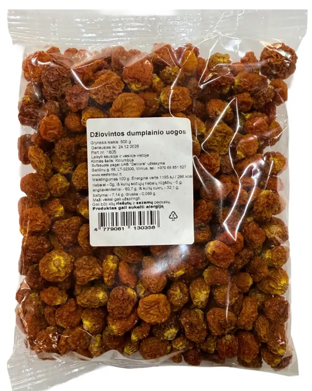 Pēc iepakojuma atvēršanas to cieši noslēdziet, lai ogas papildus neizžūtu.