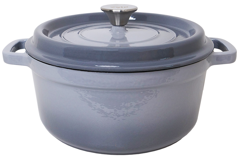 Apaļš emaljēts čuguna katls. Paredzēts sautējumu, putru, zupu, maizes un citu ēdienu gatavošanai uz visu veidu plītīm (ieskaitot indukcijas), cepeškrāsnī un uz grila.